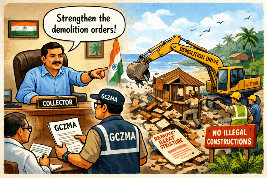 MARGAO: In a decisive move to strengthen enforcement of coastal protection laws, the Office of the Collector, South Goa, has directed the Goa Coastal Zone Management Authority (GCZMA) to immediate-ly review and reinforce demoli-tion orders against unauthorised structures in Coastal Regulation Zone (CRZ) areas.