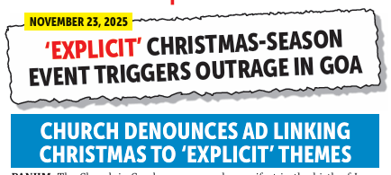 Following wide spread outrage from various groups, NGOs and members of the civil society, organ isers of the controversial event “Tales of Kamasutra and Christmas Celebra tion” finally pulled the plug by cancelling the four-day camp after repeated police inquiries and complaints about the controversial pro motional poster that critics labelled as offensive and in sensitive. Speaking to O Heraldo, or ganiser Manjit Singh of the Osho Ludhiana Meditation Society, on Sunday said that the four-day event has been called off following repeat ed enquiries from the Goa Police. “I have cancelled my four day event. Police contacted me on Saturday and Sunday to enquire about the pro gramme. PANJIM: The Church in Goa has ex pressed its ‘deep anguish and pro found hurt’ over a controversial on line poster advertising a four-day event titled ‘Tales of Kamasutra & Christmas Celebration’ which irre sponsibly associates the sacred cel ebration of Christmas with ‘explicit’ and unrelated themes. Archbishop Filipe Neri Cardinal Ferrao said, “It is with deep anguish and profound hurt that the Church in Goa addresses the recent advertise ment on social media, which irre sponsibly associates the sacred cel ebration of Christmas with explicit and unrelated themes. Christmas is a holy time for Christians across the world — a season of joy, peace, and the remembrance of God’s love made manifest in the birth of Jesus Christ.” “To distort this sacred occasion by linking it to themes that are en tirely unrelated and contrary to its spiritual essence is deeply offensive to the faith and sentiments of mil lions. Such portrayals not only disre spect the religious beliefs of an entire community but also erode the values of mutual respect and decency that our diverse society cherishes. I urge the creators and promoters of this advertisement to reflect on the pain it has caused, withdraw the content immediately, and ensure that future communications uphold the dignity of all faiths,” Cardinal Ferrao said.