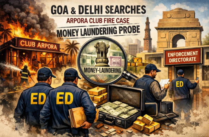 The Enforcement Directorate (ED) on Thursday conducted searches at eight to nine locations across Goa and Delhi as part of its investigation into an alleged money-laundering case linked to the illegal functioning of a nightclub in Arpora.