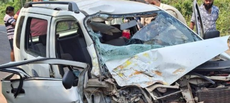 A major road accident was reported at Shelvon in Curchorem on Friday after a car collided with a dumper truck, leaving the car driver seriously injured.