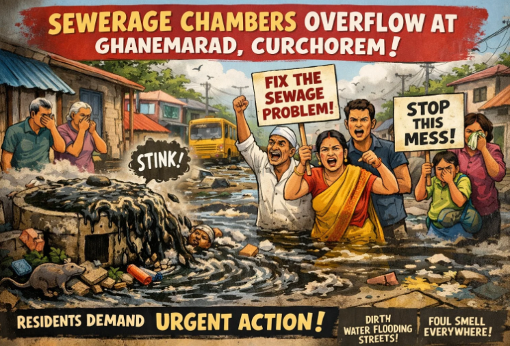 Residents of Ghanemarad in Curchorem are facing growing inconvenience due to continuous water flow from a newly constructed sewerage tank in the area. Two newly built sewerage chambers have reportedly been overflowing, leading to unhygienic conditions and concern among locals.