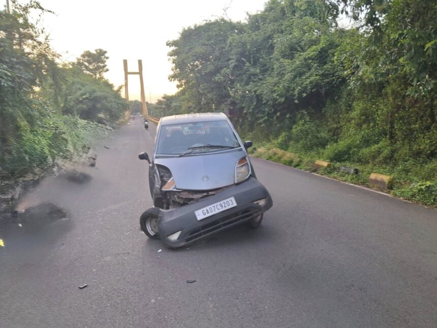 An accident took place this evening on the Corjuém side after the Aldonã-Corjuém bridge involving a Tata Nano and a Duke bike, both heading towards Corjuém. The rider, a boy from Corjuém, and the pillion rider, a girl from Aldona, sustained serious injuries. They were first taken to District Hospital, Mapusa, and later shifted to GMC Bambolim in critical condition. Authorities and locals have appealed to all bike riders to wear helmets and exercise caution on the Aldonã-Corjuém route. The approach roads and bridge are prone to accidents due to blind curves, making speeding and overtaking extremely dangerous.