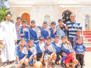 | Our Lady of Mount Carmel, Arambol, winners of 4th Nivia All-Goa (Pernem Deanery) Altar Servers Sports Festival football organized by Vocation Commission for Diocesan Clergy in association with John Paul II foundation for Sport. They defeated St Joseph’s, Pernem 1-0 in the finals. The team alongwith Fr Pio Almeida parish priest, OL of Mount Carmel, Arambol and Fr Domnic Savio Rodrigues, assistant parish priest. |
