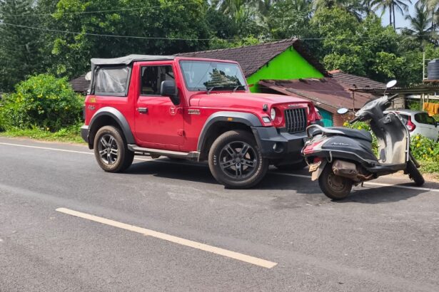 A road accident at Marna-Siolim on Tuesday evening (October 15, 2025) left a woman injured after a rented Thar, reportedly…